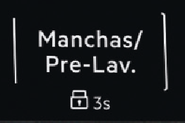 Para activar/desactivar esta opción, toque el botón Manchas/Pre-Lavado hasta que el indicador se encienda/apague en la pantalla.
