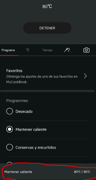 3. (Imagen Orientativa). Deben pulsar la opción de mantener caliente.